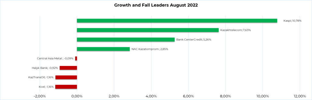Kazakhtelecom shares rose 7.63% in October on news of the decision to pay a dividend for 2021 in the amount of 3,509.39 KZT per share. The national telecommunications operator also announced a partial early redemption of bonds placed on AIX totaling 34 billion KZT.