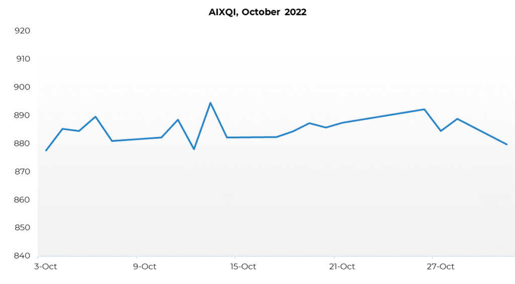 Throughout October, the AIXQI traded in the green compared to the previous month’s closing level, gaining 2.99% by the end of October. Thus, the AIXQI rose from 854.13 points to 879.71 points. Half of the index companies ended October on a positive note.